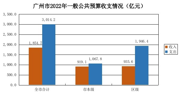 全市一般公共预算支出3,014.2亿元,完成预算103.6%。其中:市本级支出1,067.8亿元,同比增长3.2%;区级支出1,946.4亿元,同比下降2%。