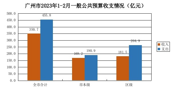 1-2月,全市一般公共预算收入350.7亿元,同比增长1%,其中:市本级收入169.2亿元,同比增长3.7%;区级收入181.5亿元,同比下降1.4%。全市一般公共预算支出455.8亿元,同比增长1.3%。其中:市本级支出190.9亿元,同比增长10%;区级支出264.9亿元,同比下降4.1%。