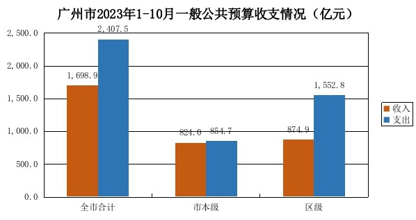 1-10,全市一般公共预算收入1,698.9亿元,完成年初预算90.3%同比增长6%。其中:市本级收入824亿元,同比增长3%;区级收入874.9亿元,同比增长8.9%