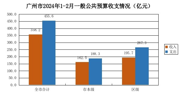 市一般公共预算支出455.6亿元,与去年同期基本持平,完成年初预算16.3%。其中:市本级支出188.3亿元,同比下降1.4%;区级支出267.3亿元,同比增长0.9%
