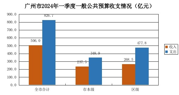 一季度,全市一般公共预算收入506亿元,同比增长2.1%。其中:市本级收入237.5亿元,同比下降0.2%;区级收入268.5亿元,同比增长4.1%。