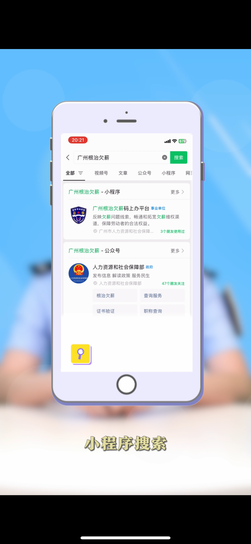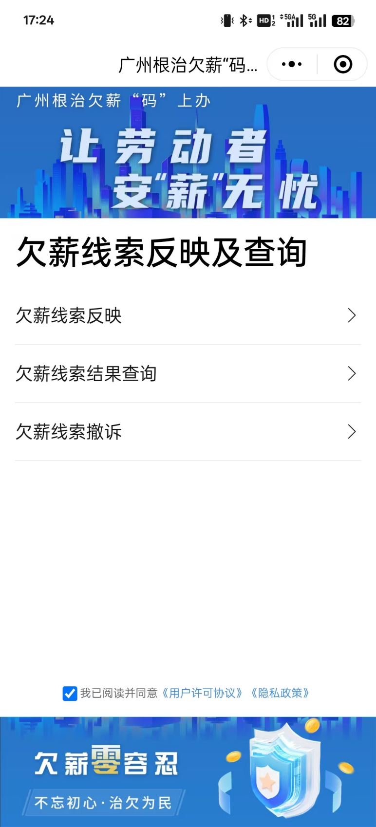 也可在微信小程序直接搜索“广州根治欠薪”,选择对应小程序。