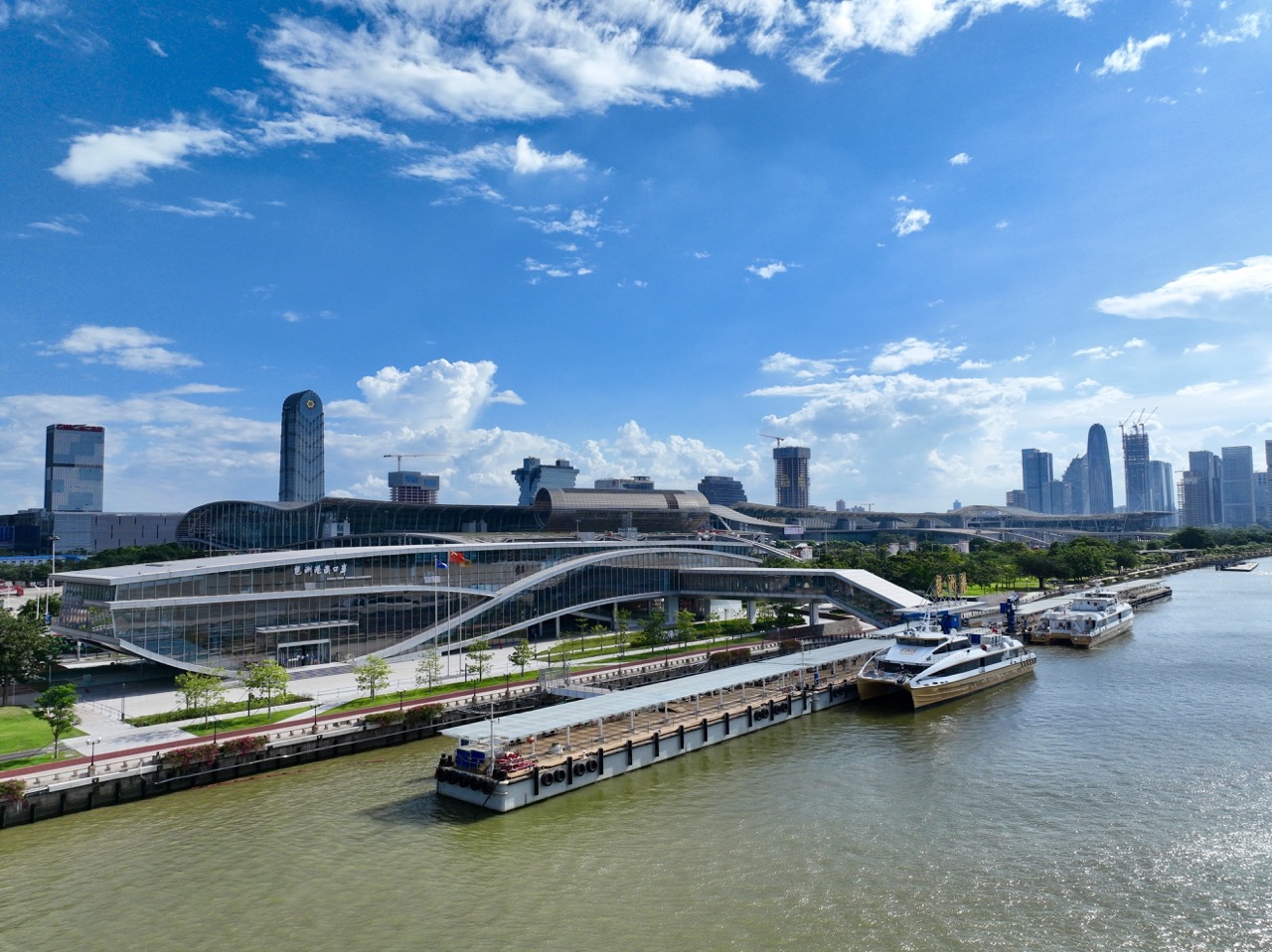 琶洲港澳客运口岸是广州市区内唯一的水上跨境客运口岸,位于海珠区阅江中路,紧邻广交会展馆。自2023年通航运营以来,服务了包括6届广交会客商在内的大批跨境客商,累计运载旅客超36万人次。口岸开通了香港国际机场往返航线,创新推出“海天联运”服务模式,实现“广州检票、香港登机”的一站式出行体验。